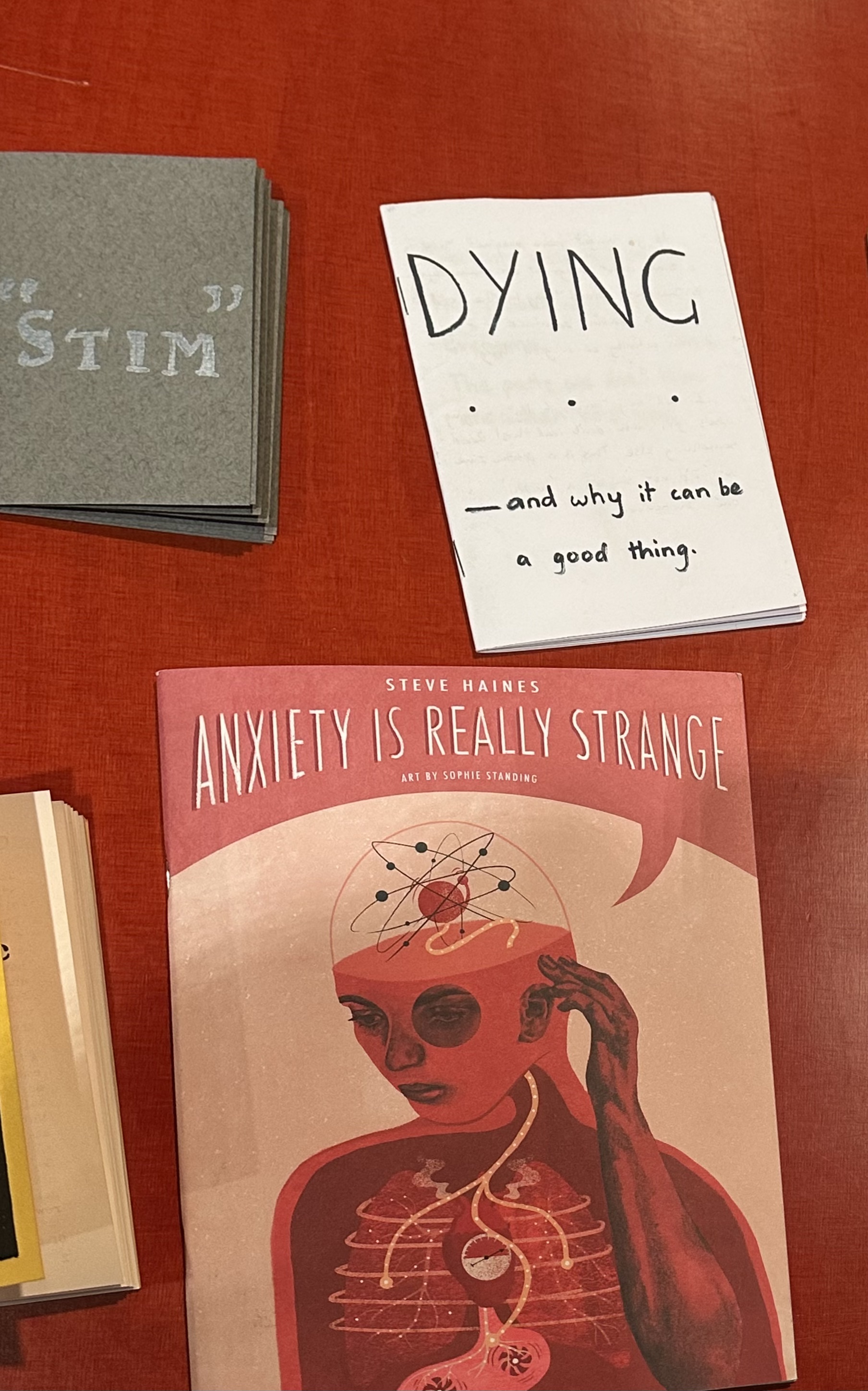 I unintentionally developed this huge collection archive of neurodiverse zines, which I represented again at the academy in Amsterdam recently. I realised oh, have I got the world's only and first neurodiversity zine archive? Probably yes! I also collected zines around ADHD and bipolar disorder, dysbraxia, the health service and diagnosis institutionalization…